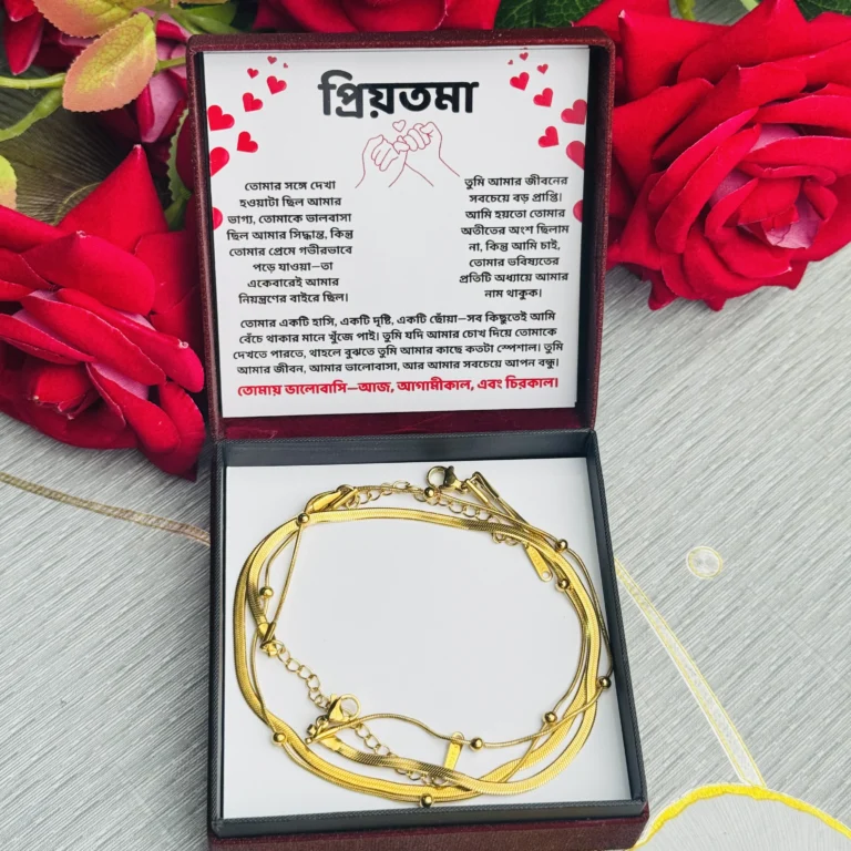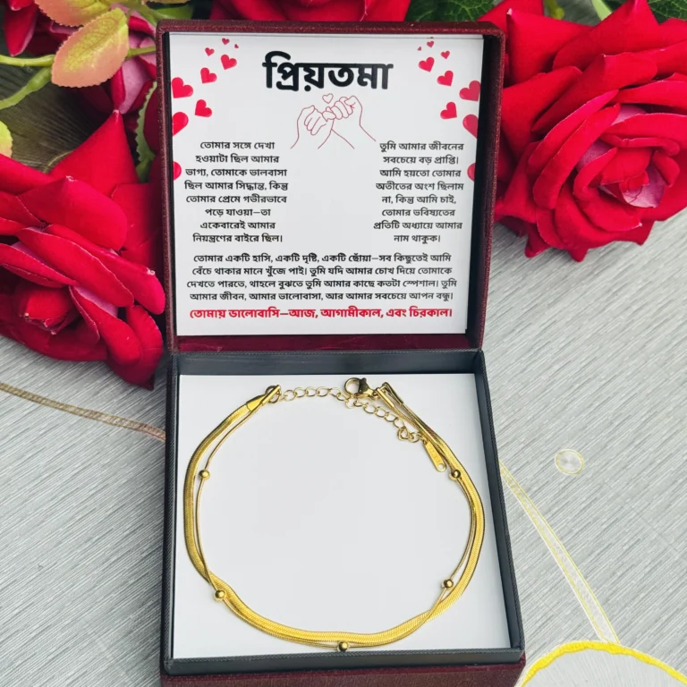 এই চমৎকার পায়েলগুলো শুধু একটি গিফট নয় – এটি একটি অনুভূতি, একটি স্মৃতি, একটি প্রেমের প্রকাশ! যখন আপনার প্রিয়তামা এই গিফট বক্সটি খুলে ইমোশনাল ম্যাসেজটি পড়বে, তার মুখে যে হাসি ফুটবে – তা আপনি কখনো ভুলবেন না।