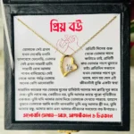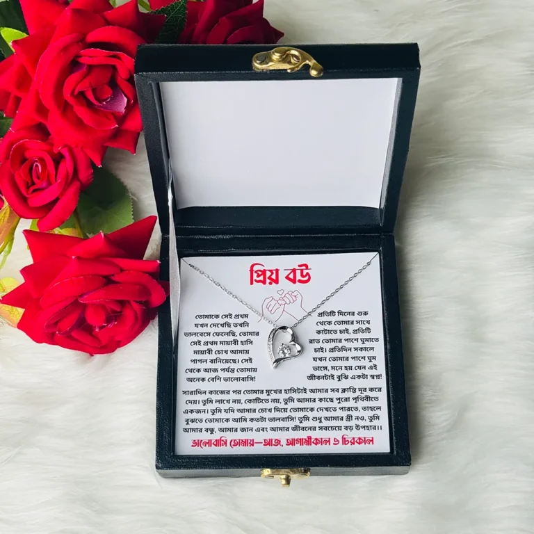 এই চমৎকার লাভ হার্ট নেকলেসটি শুধু একটি গিফট নয় – এটি একটি অনুভূতি, একটি স্মৃতি, একটি প্রেমের প্রকাশ! যখন আপনার প্রিয় স্ত্রী এই গিফট বক্সটি খুলে ইমোশনাল ম্যাসেজটি পড়বে, তার মুখে যে হাসি ফুটবে – তা আপনি কখনো ভুলবেন না।